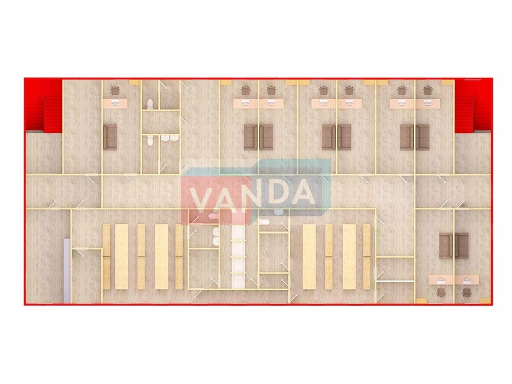 • В данном модульном здании можно заменить базовую внутреннюю отделку из ЛДСП на любой вид внутренней отделки, например: панели МДФ,панели СМЛ или ГВЛО и т.д.